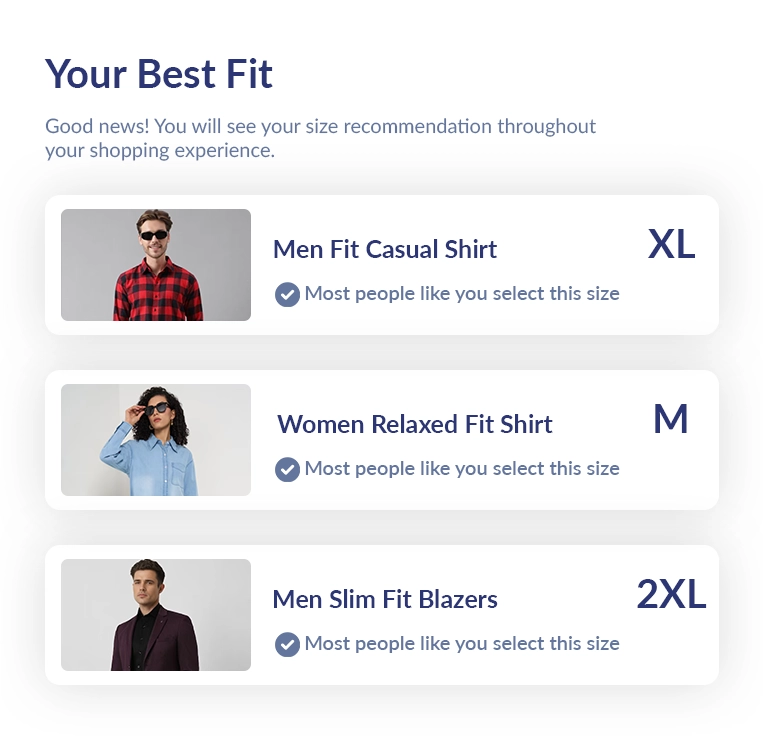 Reduce returns, increase conversions, and simplify the buying journey with accurate size Recommendations.