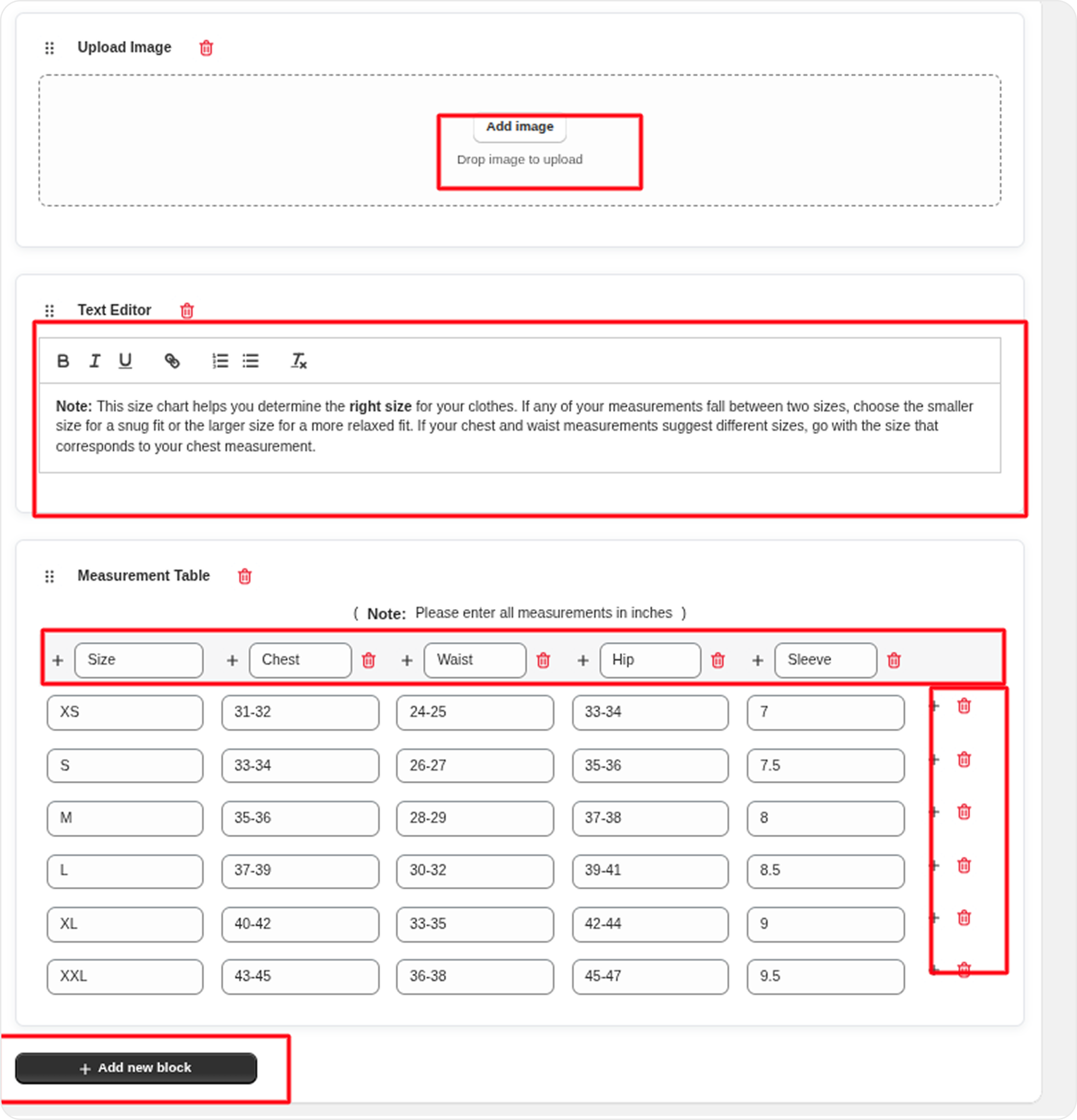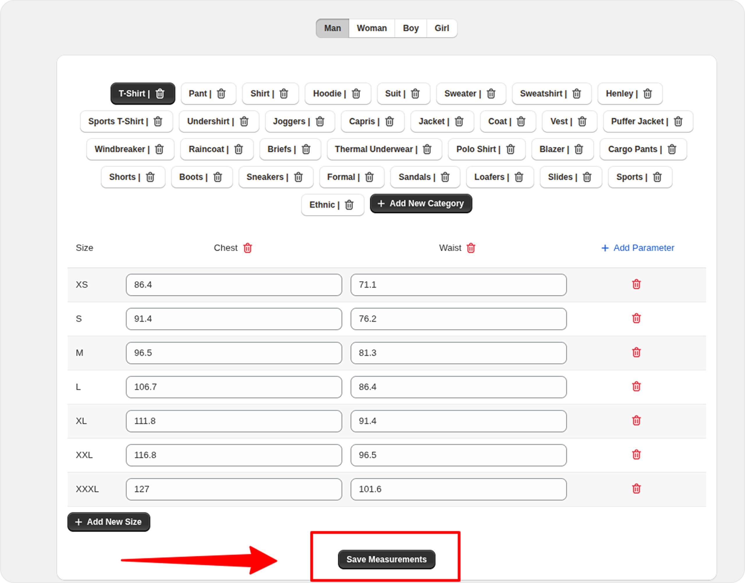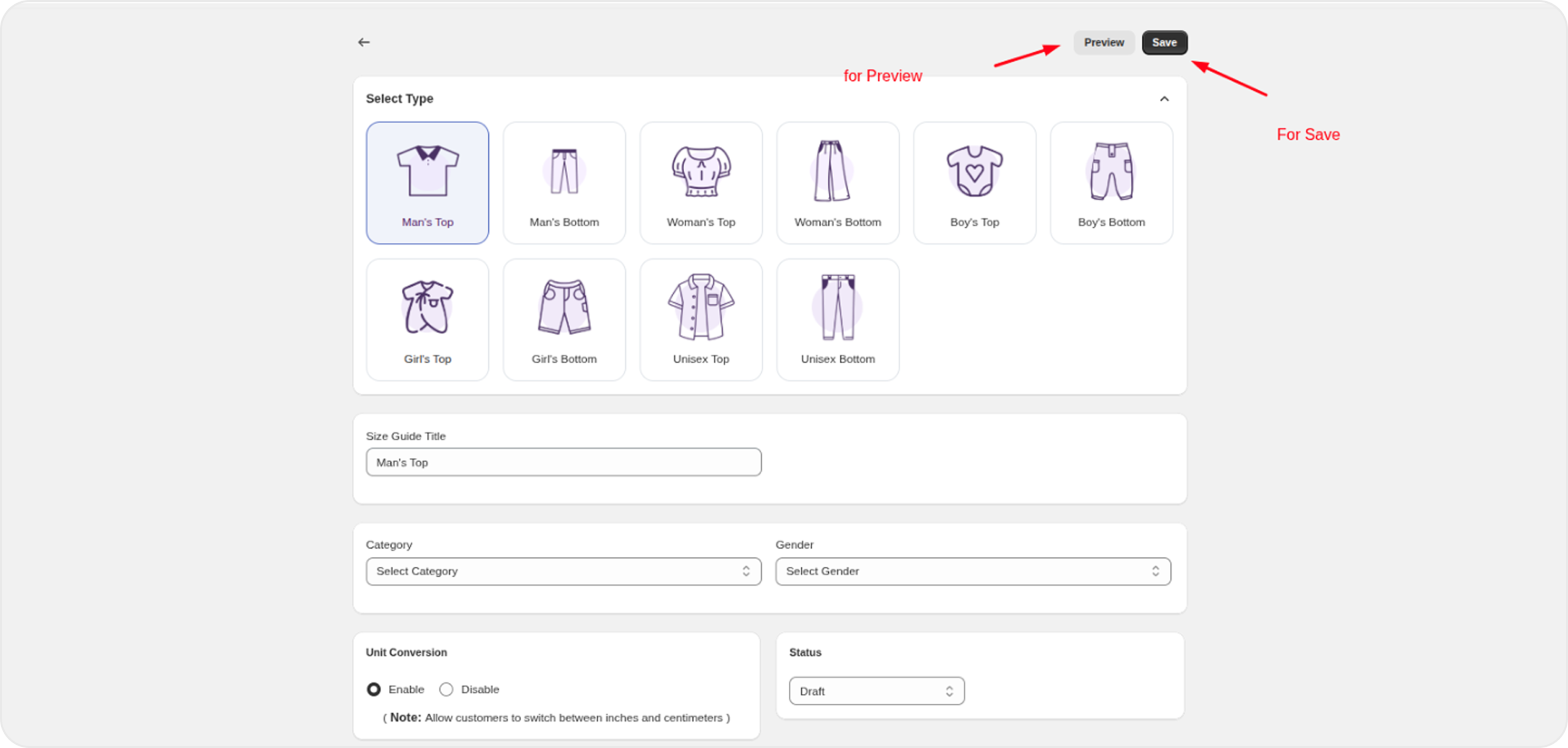 Save – Save all the changes and data you’ve added to the size guide to ensure it’s applied correctly and ready for customers to view.