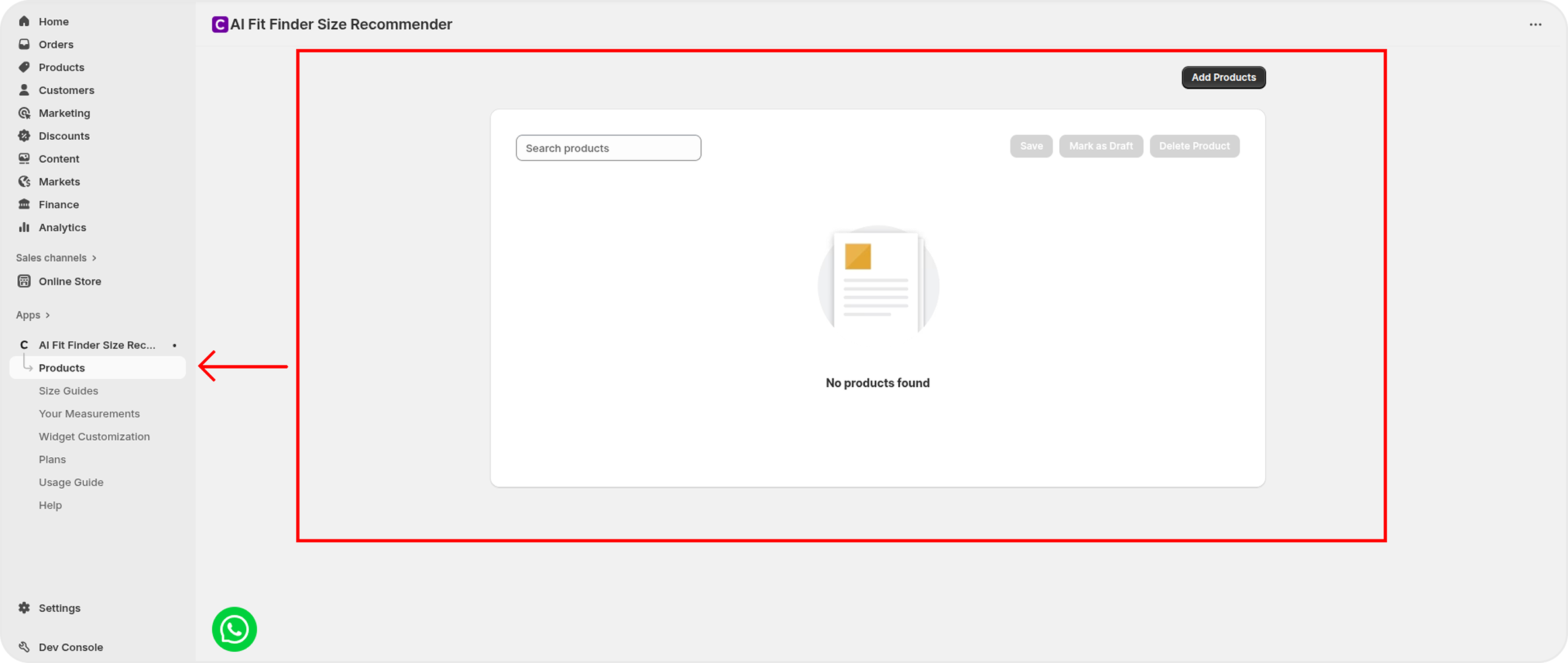 In your Shopify admin, click AI Fit Finder from the navigation menu to access the app dashboard.