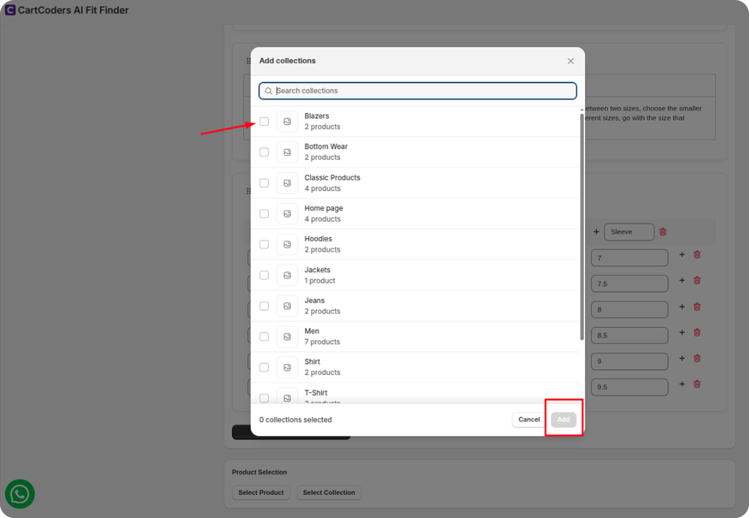 Assign your size guide to specific products or entire collections. At least one product or collection must be selected to activate the size guide.