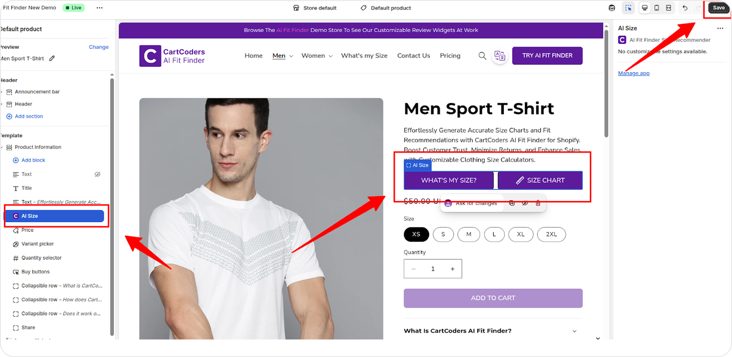 To add the app block, open your store’s Theme Customizer. From there, drag and position the app block where you want it to appear on your product page.